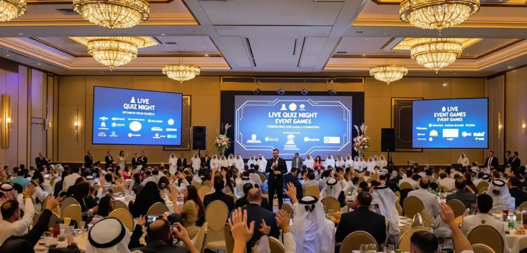 Corporate events are no longer just about formal speeches and networking; they require an interactive element to keep employees, clients, and stakeholders engaged. At EventGames, we bring energy and excitement to corporate gatherings with live trivia challenges, team-building competitions, and custom-branded game shows designed to align with your company’s goals. Whether you are hosting an annual gala, a training session, a conference, or an award ceremony, our interactive crowd games create a fun and engaging environment that fosters teamwork, encourages learning, and strengthens employee relationships. Imagine starting your corporate event with a high-energy trivia challenge where employees compete in teams to answer industry-related questions or a fast-paced “Fastest Finger First” game to test knowledge in a fun, competitive format. Our games not only entertain but also reinforce key business messages, making corporate events more impactful and memorable.